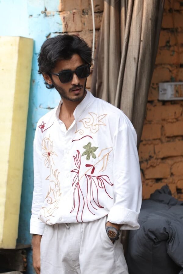 Men’s White Hand-Embroidered Shirt – Artisanal Ethnic Contemporary Wear